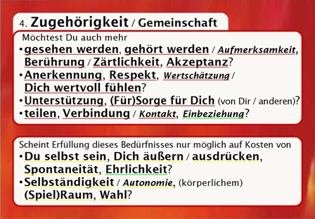 Bedürfniskarte gewählt hast und/oder was die Worten auf diese Karte für Dich