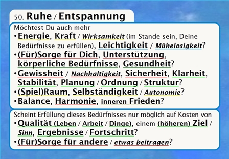 Bedürfniskarte gewählt hast und/oder was die Worten auf diese Karte für Dich