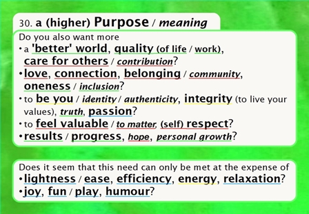 are for you connected to your need 'a (higher) Purpose' and/or 'meaning'? Do