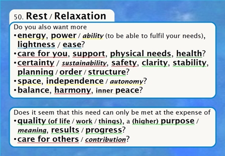 are for you connected to your need 'Rest' and/or 'Relaxation'? Do the needs