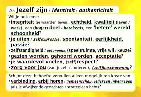 verbonden met jouw behoefte aan 'Jezelf zijn' en/of 'identiteit /