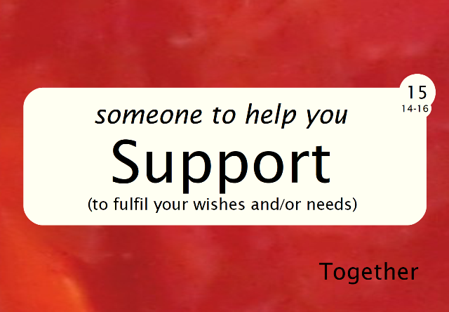In this demo we pretend that you chose the word 'Support'. The red line under this word helped you to find this red card from the Deck of Needs. You are now able to listen to this need. Imagine that you hold this card in your hand and look at the words on this card. Does it feel pleasant or unpleasant to hold this card? Does your Partner / Best Friend contribute sufficiently to fulfil your need for support? What thoughts and feelings come up, when you hold this card and think about this need?