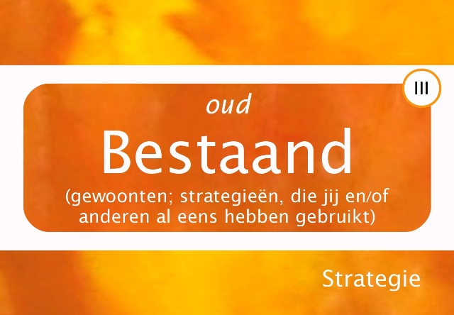 Met de eerste set Strategiekaarten (paars) bepaal je in welk gebied volgens jou de beste strategie ligt. Je hebt daarvoor in dit geval het gebied "Partner / Beste Vriend(in)" gekozen. Met de tweede set Strategiekaarten (oranje) kan je concrete strategieën binnen dit gebied vinden. Deze set bestaat uit meerdere combinaties van uitersten, die je helpen om te bepalen: