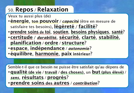 The backside of each card offers another way to listen to deepen your understanding and thereby listen to your needs at a deeper level. Which words are for you connected to your need 'Rest' and/or 'Relaxation'? Do the needs on the backside offer more clarity, why you picked your needs card and/or what the words on this card mean to you?