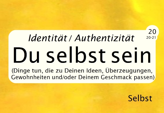 Für diesen Demo gehen wir davon aus, dass Du das Wort 'Du selbst sein' gewählt hast. Durch der grünen Linie unter dem Wort, hast Du dies grüne Karte aus dem Deck of Needs gefunden. Du hast jetzt die Möglichkeit diesem Bedürfnis zu zu hören. Stell Dir vor, dass Du diese Karte in der Hand hältst und schaue Dir die Worten auf der Karte an. Fühlt es sich angenehm oder unangenehm an diese Karte festzuhalten? Hilft Deine Arbeit ausreichend bei der Erfüllung von Deinem Bedürfnis an Du selbst sein? Welche Gedanken und Gefühle kommen hoch, wenn Du diese Karte festhältst und an diesem Bedürfnis denkst?